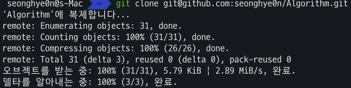 ํด๋น ๋ช ๋ น์ด๋ GitGub์ ์๋ ํ๋ก์ ํธ๋ฅผ ๋ด PC๋ก ๋ด๋ ค๋ฐ๋ ๋ช ๋ น์ด๋ค.